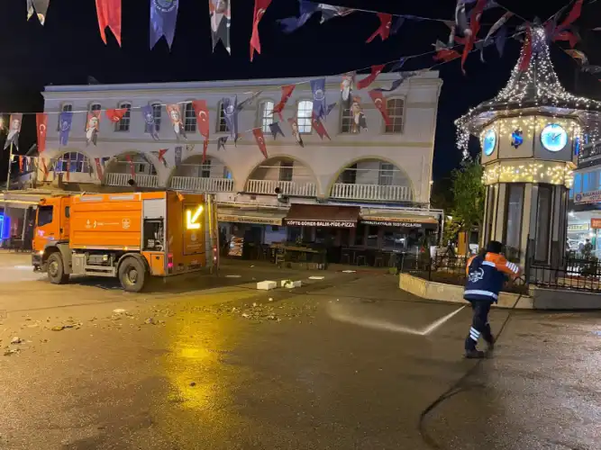 Karasal alanda ise Atık Yönetimi Müdürlüğü ve İSTAÇ Adalar kent temizlik ekipleri devreye giriyor. Ekipler, özellikle gece saatlerinde Adalar’ın cadde ve meydanlarında mekanik yıkama ve süpürme çalışmaları gerçekleştiriyor. Bu sayede gün boyunca biriken toz ve çöplerden arındırılan Adalar, yeni güne temiz bir başlangıç yapıyor.