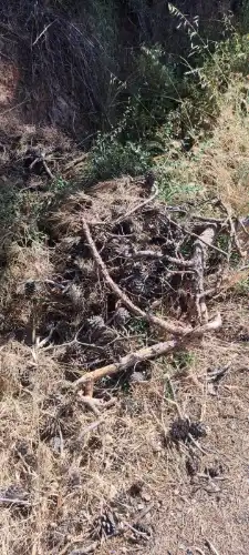 Aradan geçen iki haftalık sürede toplanmayan dallar, kavurucu yaz sıcaklarının etkisiyle tamamen kurudu. Ormanlık alanın hemen bitişiğinde bulunan bu yanıcı madde yığınları, potansiyel bir yangın için adeta davetiye çıkarıyor.