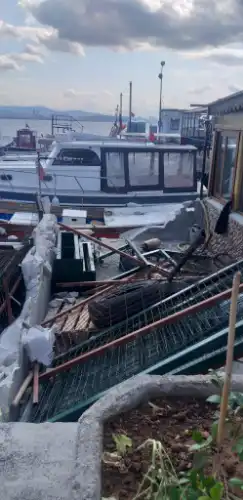 Yıkım operasyonu, İstanbul Büyükşehir Belediyesi ve Adalar Belediyesi zabıta ekiplerinin koordinasyonunda gerçekleştirildi. Görgü tanıklarının paylaştığı fotoğraflarda, sarı kasklı zabıta memurlarının elektrikli testere ve kesici aletlerle metal çitleri ve beton yapıları parçaladığı görülüyor. Sahil kenarındaki marina alanında bot ve teknelerin arasında yürütülen çalışmada, enkaz parçaları, bitki saksıları, yakıt bidonları ve çeşitli malzemeler etrafa saçılmış halde.